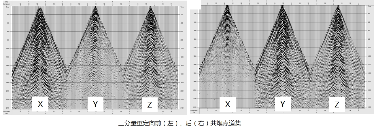 基于数据的三分量重定向技术,不依赖野外采集得到节点方向参数,提高了重定向分析的精度,适用于不同水深的资料。