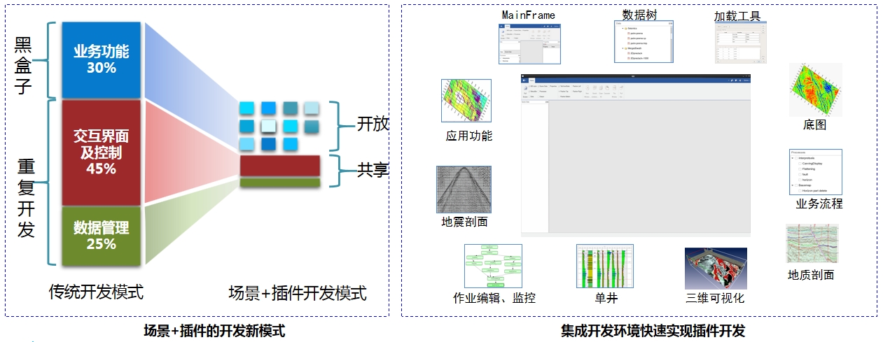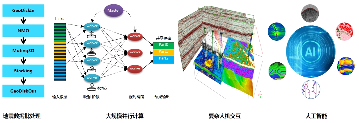 支持应用软件高效开发,并提供卓越的开放性和可扩展性,是iEco平台设计的重要目标,iEco能够为批处理、大规模并行、复杂人机交互和人工智能等各种常见的物探软件形态提供服务。