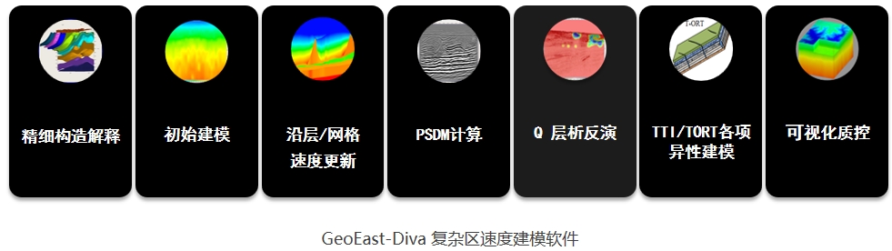 GeoEast-Diva深度域速度建模软件适用于 2D/3D 陆上起伏地表、海上拖缆、OBN 等多种纵波与转换波数据,具备TTI/TORT各向异性及Q建模能力,可灵活利用井信息建模,并具有OVT全(多)方位网格层析、高斯射线束层析、变网格层析、断控层析、井控层析等多种特色功能,能够满足国内外各种不同地质构造、不同分辨率数据的叠前深度偏移建模需求。