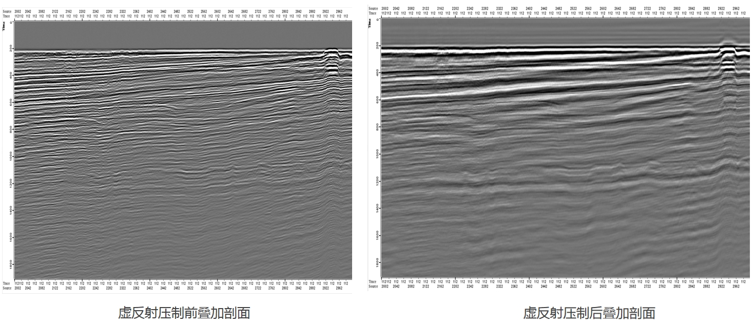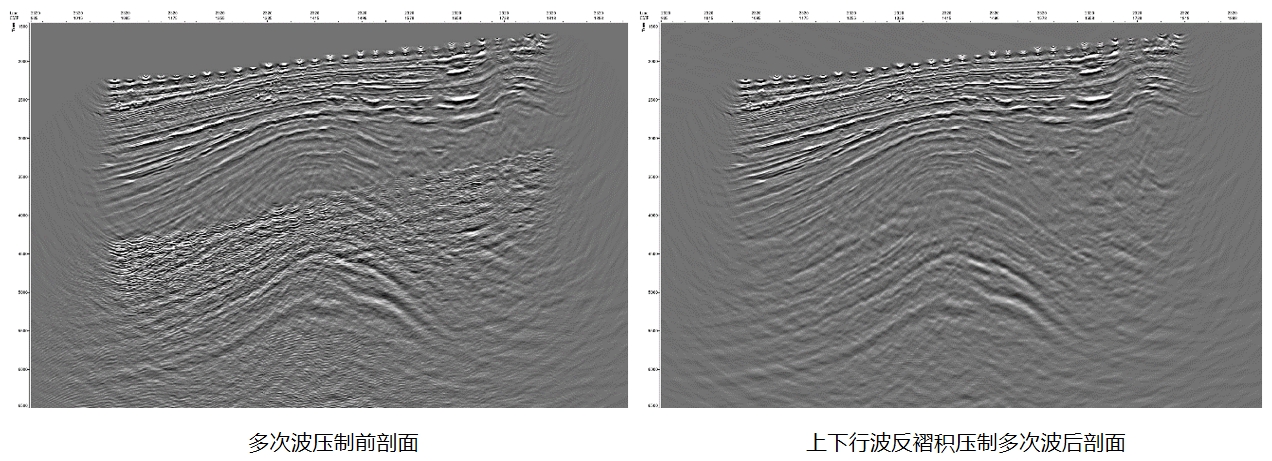 上下行波反褶积能够一步完成OBN数据中所有表面多次波预测和压制,简化了处理流程,提高了处理效率。