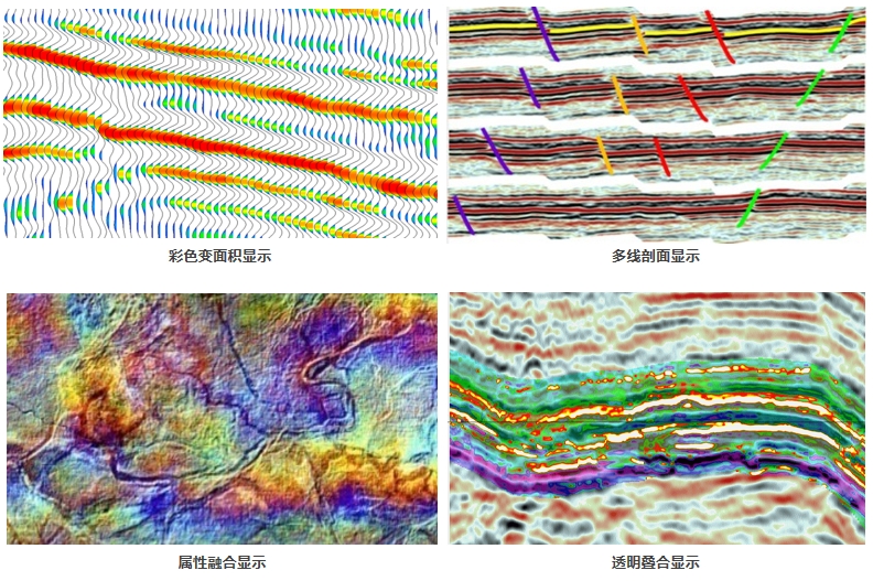 提供多属性叠合、变面积彩色显示、属性融合、折叠显示、多线剖面等丰富的显示功能,便于用户对断层或地质异常体的分析。