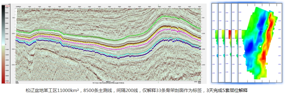 基于深度学习的人工智能神经网络,增加了智能测井多曲线同步预测、智能扩径检测与校正、智能地震多层位解释、 2D/3D标签智能断层标签识别、智能地质体等智能化解释技术系列,并提供了丰富的配套功能,大幅提高地震解释工作效率和解释精度。