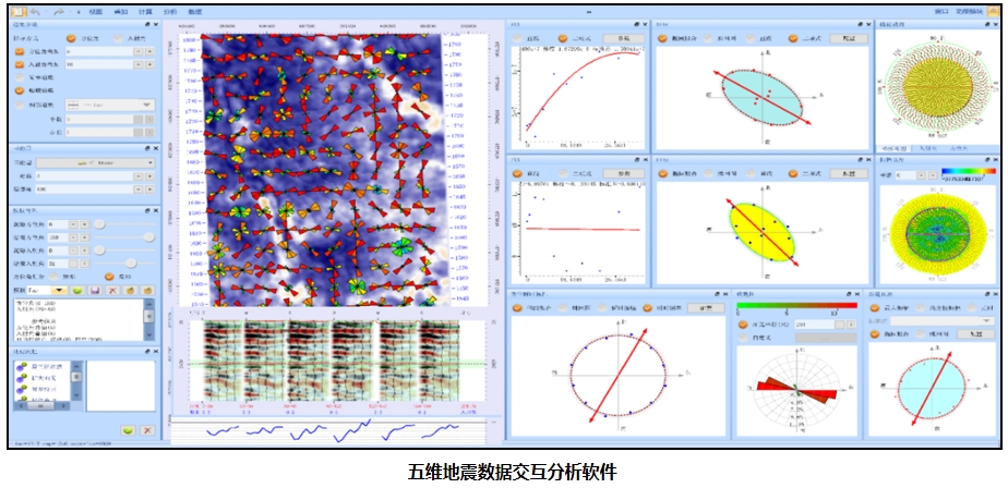 具有VTI双谱分析、四参数分析及多方位多参数分析功能,能够完成转换波叠加和叠前时间偏移成像参数的交互迭代分析、插值及建场。