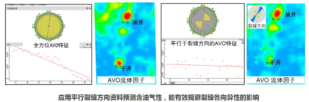 基于宽方位、高密度道集数据的裂缝预测结果,优选平行裂缝方位进行裂缝导向方位AVO分析,可有效规避裂缝各向异性对AVO特征的影响,从而提高油气预测精度。