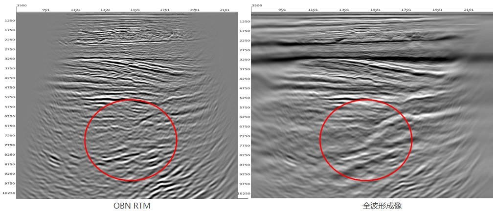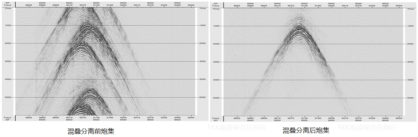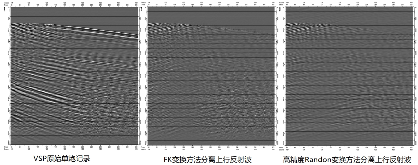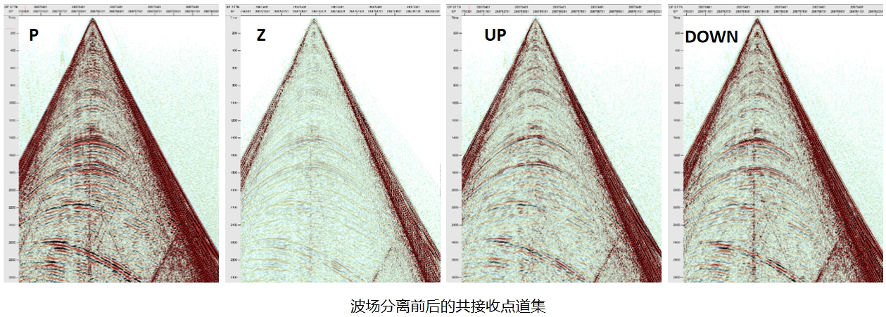 波场分离技术包含最小能量、交叉虚反射等波场分离方法,能够有效分离上行波和下行波,为基于上行波的一次波偏移和基于下行波的镜像偏移提供优质的数据。