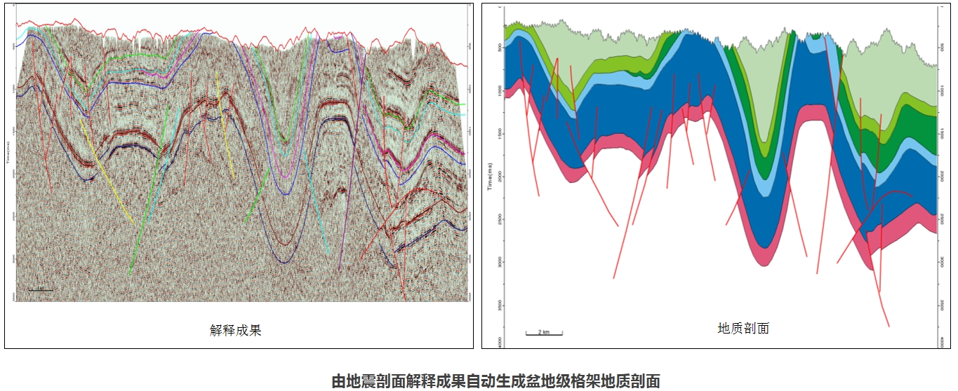 具备测井综合柱状图快速生成、基于地震解释成果的二维地质模型自动建立及油藏剖面自动生成功能,并提供地震属性约束的井间小层对比等高效井震联合解释工具,大幅提高了地质剖面的编制效率,改善了井间插值的合理性,实现了测井与地震信息的深度结合。