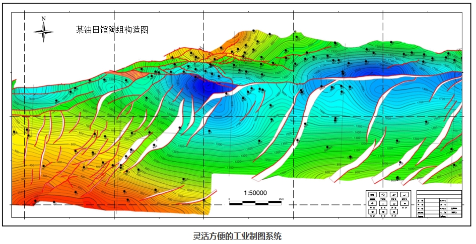 具备多工区大数据联合成图能力,在多地质体同时成图、等值线交互编辑、圈闭边界拾取及统计等方面灵活高效,支持汉字责任表、图例及标注,能够输出CGM、PCG、DXF等多种格式。