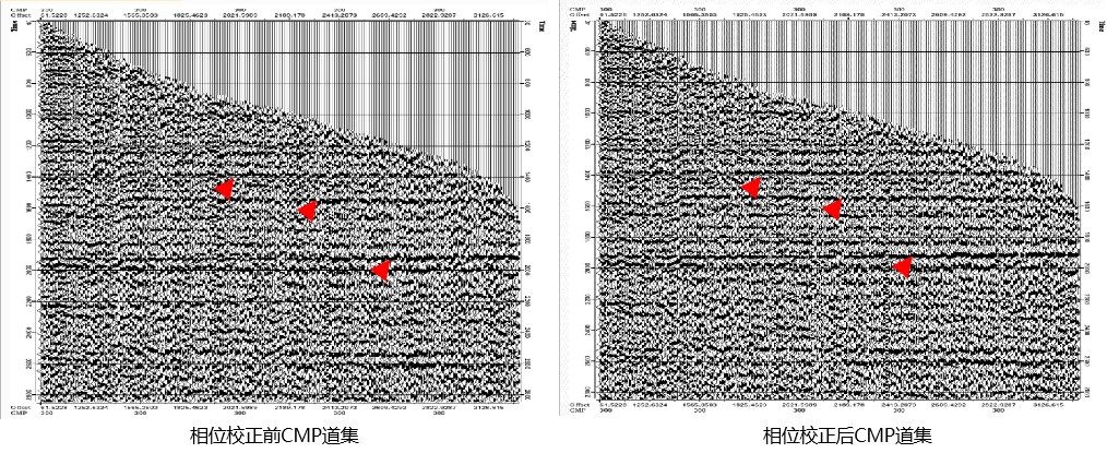 地表一致性剩余相位校正能够同时进行剩余时差和相位校正,可以解决由于相位差异引起的同相轴不聚焦问题,有效提高同相轴的一致性和成像质量。