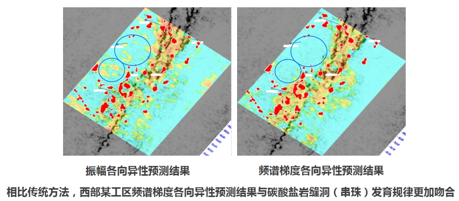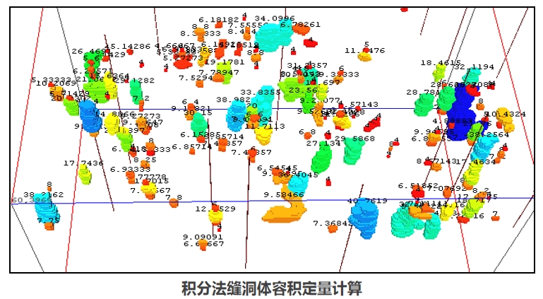 提供孔隙度反演、相干曲率分析、五维解释、聚类分析、油气检测、容积积分等功能分析岩溶储层的溶洞、裂缝及流体特征,并在三维可视化系统中实现缝洞单元的综合评价。