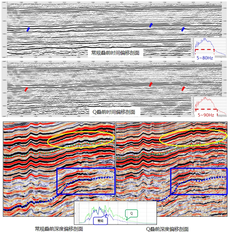 低频补偿、气泡压制技术和虚反射压制等宽频处理技术,可以有效增强地震资料的高、低频信息,拓宽数据频带,提高分辨率。