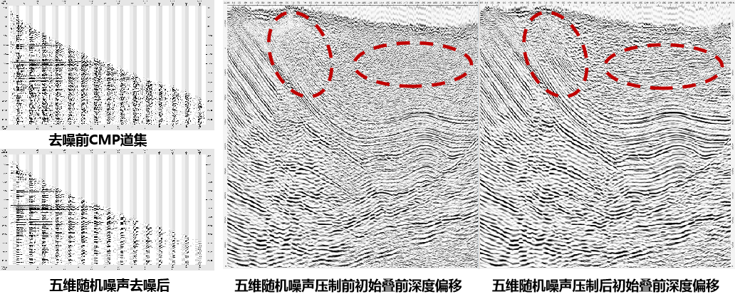 充分利用宽方位数据的多维信息,通过五维相干谱解析、五维解析谱自动拾取等方法,在压制随机噪声的同时更好保留数据的方位各向异性特征。
